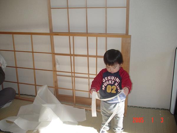 お父ちゃんの障子張り替えのお手伝いをして …